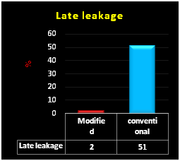 Leakage of PD fluid is a major noninfectious complication reported in percutaneous method, with a reported frequency as high as 12.8 %.20 Whereas in our study modification of implantation technique led to dramatic reduction in incidence of early leak (within 30 days of catheter implantation) to 4.17% v/s 44.89% in conventional method as well as late leak (after 30 days of implantation) found in 2.08% v/s 51.02% which suggests that minimizing the size of incision and dissection can lead to better outcomes. Conservative means (change to IPD, observation) were applied for the management of late leaks.