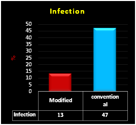 Peritonitis: In our study episodes of peritonitis were significantly lesser in modified method which may be related to less dissection and procedure time. Modified method was associated with short hospital stays.