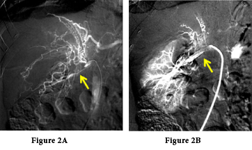 A 26-year-old female presented with severe hypertension blood pressure 190/120mmHg, with disparity in kidney size by ultrasonography (US). Doppler US revealed left renal artery dampened wave suggesting renal artery stenosis. Isotope renogram was carried out and revealed poor uptake & excretion of TC-99m-MAG3 by left kidney & impaired right kidney (Figure 1). Doppler US carotids were normal. Poor kidney function, serum creatinine 5.9gm/dl rose in two days to 8mg/dl with electrolytes imbalance; K+ 5.9mg/dl, PH 7.2 and urine output was less than 400 ml/day. Acute kidney injury was suspected, hemodialysis initiated to improve general condition and prepare patient to renal biopsy from the right kidney. However, blood pressure never been ameliorated neither pharmacological nor by ultra filtration with shooting up to 240mmHg systolic/130mmHg diastolic that endangered patient life. Tight monitoring in the intensive care unit, glyceryl trinitrate infusion was started and titrated to control blood pressure; immediate angiography was carried out once blood pressure reached 160/110mmHg and revealed long stenotic segment of left renal artery and poor-perfused kidney (Figure 2A).