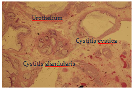 Conclusion: Reviewing the literature, different risk factors were postulated for development of intestinal metaplasia of the urinary bladder, which result from chronic irritation of the urothelium including cystitis, stones, bladder exstrophy, ureteral reimplantation and instrumentation, but smoking per se was not. By reviewing our patient, neither any of the risks mentioned were included which raises the question that is smoking a risk factor for intestinal metaplasia