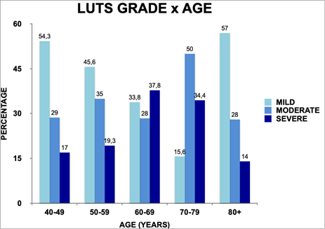 To facilitate understanding and data analysis, cases classified as “Mild” symptoms were considered normal. In clinical practice, given that the IPSS questionnaire does not include the “normal” category, individuals classified as “mild” are considered as such, due to the fact that the complaints do not cause changes in quality of life, and do not require therapeutic intervention.