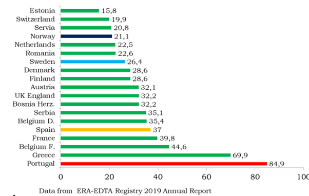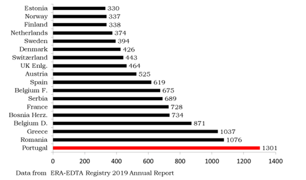 Portugal is a country with a recognized high level of clinical activity in nephrology and with a number of public and private units for dialysis treatment and kidney transplantation, per million inhabitants, among the highest in Europe.1