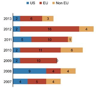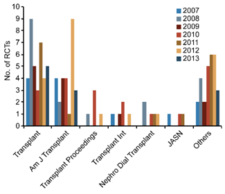 After the removal of duplicate articles among the databases, the investigator compiled a list of articles that required individual screening according to the study inclusion and exclusion criteria. Screening led to the exclusion of many RCTs, most of which involved double-organ transplants. Others were excluded because they were cohort, non-randomized or cross-sectional studies. The final list of RCTs was then divided into two arms: one arm constituting studies published from the beginning of 2007 until the end of June 2010 and the other arm containing studies published from July 2010 until the end of 2013 (Figure 1).