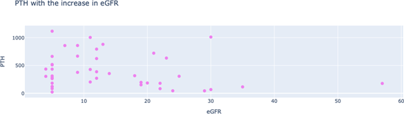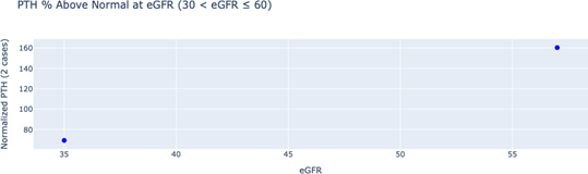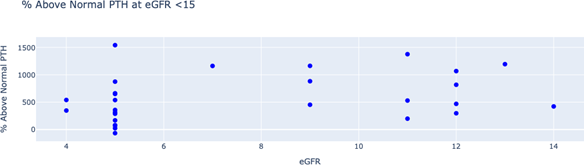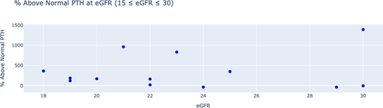 Average PTH value above normal: 345.59% for the interval with eGFR greater than or equal to 15 and less than or equal to 30. (15 ≤ eGFR