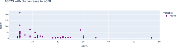 Graph showing the trends of PTH and FGF23 as eGFR decreases