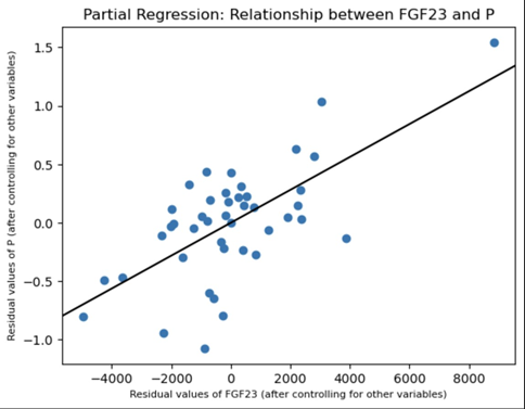 These results allow us to assert that there is a positive linear relationship between P and FGF23. This can also be demonstrated with Partial regression, which you can see here: